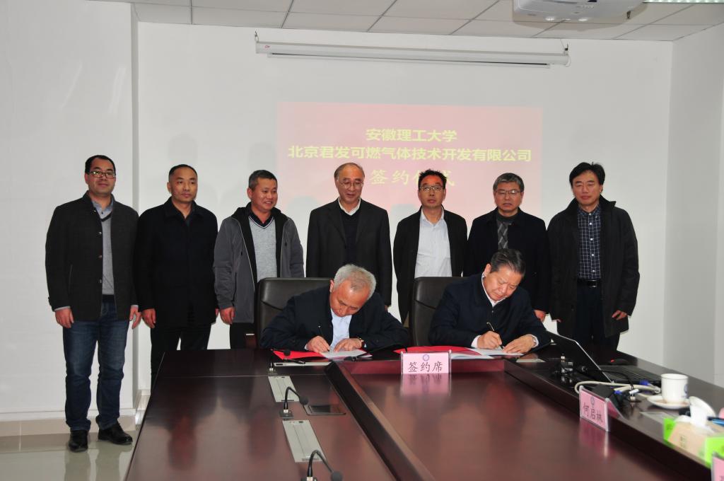 4月3日下午,我校与北京君发可燃气体技术开发有限公司战略合作协议签署仪式在舜耕楼1121会议室举行。校党委副书记、校长袁亮院士,北京君发可燃气体技术开发有限公司董事长杨君廷、总工程师王孝敏等出席仪式。校党委常委、副校长郑明东主持仪式。